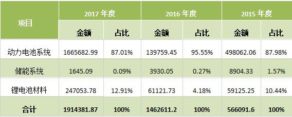 2015年、2016年和2017年,公司動(dòng)力電池系統(tǒng)銷量分別為2.19GWh、680GWh和11.84GWh。