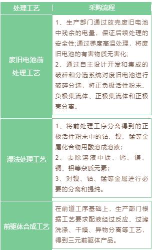 公司通過(guò)廣東邦普開(kāi)展鋰離子電池材料業(yè)務(wù),將廢舊鋰離子電池中的鎳鈷錳鋰等有價(jià)金屬通過(guò)加工、提純、合成等工藝,生產(chǎn)出鋰離子電池材料三元前驅(qū)體(鎳鉆錳氫氧化物)等,使鎳鈷錳鋰資源在電池產(chǎn)業(yè)中實(shí)現(xiàn)循環(huán)利用。