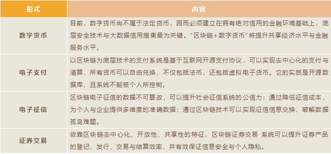區(qū)塊鏈在金融領(lǐng)域的技術(shù)結(jié)合目前相對(duì)其它產(chǎn)業(yè)較為成熟?!皡^(qū)塊鏈+”作為金融科技的底層技術(shù)架構(gòu),可以通過(guò)多種形式改變以至重塑金融業(yè)運(yùn)行模式,主要包括以下幾個(gè)方面