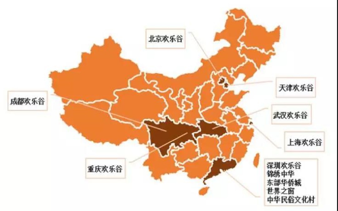 華僑城文旅板塊的重中之重是“歡樂谷”,已在深圳、北京、成都、上海、武漢、天津、重慶這7個城市形成連鎖經營,南京、西安歡樂谷在建設中?!皻g樂谷”的布局集中在經濟發(fā)達的一線城市、直轄市和省會城市,重點布局深圳。近年來,除了總部深圳,華僑城在中國旅游資源最豐富的區(qū)域如云南、海南、陜西、四川、山西、北京、河北等地,廣泛布局全域旅游新業(yè)務。