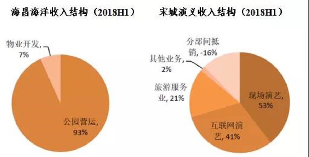 海昌海洋收入結構(2018H1) 宋城演義收入結構(2018H1)
