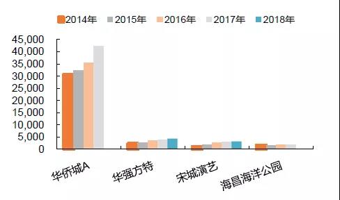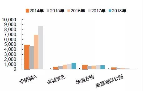 總體來看,華僑城、華強方特、長隆集團、海昌海洋主題公園以器械游樂類和動物海洋類為主,可復制性強,業(yè)務類似,競爭較激烈,因此其區(qū)域布局重合度較少,避開了競爭。除了長隆布局集中外,其他四家公司布局區(qū)域都比較分散,且布局側重點不同。華僑城重點布局一線城市和省會城市,華強方特主要布局二三線城市,長隆集團布局廣州和珠海,海昌海洋重點布局省會城市、直轄市等相對發(fā)達城市,宋城演藝其他四家公司不構成直接競爭,布局主要在熱門旅游城市。