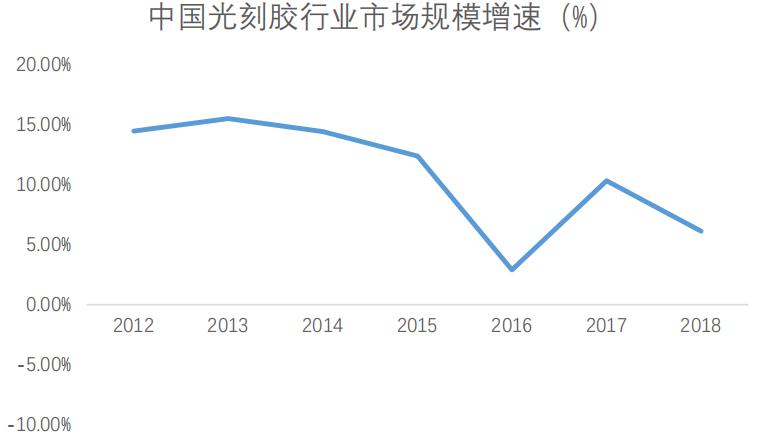 圖表4 中國(guó)光刻膠行業(yè)市場(chǎng)規(guī)模增速