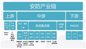 我國真正意義上的安防產(chǎn)業(yè)興起于20世紀(jì)80年代,歷經(jīng)30逾年的積淀,已形成較為完整的產(chǎn)業(yè)鏈。即“上游零部件供應(yīng)商—中游軟硬件供應(yīng)商、系統(tǒng)集成商、運(yùn)營服務(wù)商和經(jīng)銷商—下游的終端用戶。