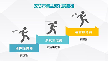 對比國外市場,我國安防運(yùn)營服務(wù)規(guī)模占比顯著偏低,將成為廠商未來布局的重點(diǎn)。因此要加快運(yùn)營服務(wù)市場發(fā)展步伐。安防運(yùn)營服務(wù)是安防產(chǎn)業(yè)的重中之重,是全球安防產(chǎn)業(yè)未來發(fā)展的趨勢。在技術(shù)升級(jí)、產(chǎn)品同質(zhì)化和成本的降低的背景下,產(chǎn)品市場的利潤空間逐漸被壓縮,從硬件提供商(賣設(shè)備)——系統(tǒng)集成商(賣解決方案)——運(yùn)營服務(wù)商(賣服務(wù))已成為主流發(fā)展路徑。