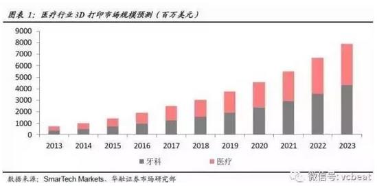 根據(jù)SmarTech《牙科3D打印2015:一個(gè)十年的機(jī)會(huì)預(yù)測(cè)與分析》中的預(yù)測(cè),3D打印技術(shù)在牙科領(lǐng)域的市場(chǎng)規(guī)模到2016年會(huì)達(dá)到20億美元,2020年銷(xiāo)售規(guī)模可上升至31億美元。