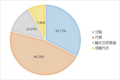在我國,文胸和內(nèi)褲的市場占據(jù)了整個(gè)貼身衣物市場的 79.0% ;睡衣及家居服占比為13.07%,保暖內(nèi)衣占比為7.96%,這兩類占市場份額相對較小,但仍然存在較大潛力。無縫內(nèi)衣、高彈性內(nèi)衣等新技術(shù)的發(fā)展,也使得傳統(tǒng)的內(nèi)衣行業(yè)重新洗牌。
