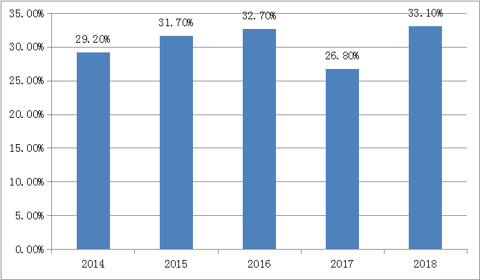 近年來,中國(guó)人口結(jié)構(gòu)發(fā)生了巨大變化,15-64歲勞動(dòng)適齡人口占總?cè)丝诘谋戎刈?011年以來呈現(xiàn)逐步下滑的趨勢(shì),2017年該比重已經(jīng)下滑至71.8%,相比2010年的最高點(diǎn)降低了2.7個(gè)百分點(diǎn)。另外,中國(guó)社會(huì)的老齡化問題更加嚴(yán)重,中國(guó)人口紅利逐步消失,目前已經(jīng)出現(xiàn)了劉易斯拐點(diǎn)。人口結(jié)構(gòu)的變化,勞動(dòng)力供給條件的變化顯著的推高了我國(guó)的勞動(dòng)成本,不僅削弱了制造業(yè)的競(jìng)爭(zhēng)力,對(duì)勞動(dòng)密集型的產(chǎn)業(yè)同樣也帶來了嚴(yán)峻的挑戰(zhàn),也削弱了中國(guó)產(chǎn)品在全球市場(chǎng)的競(jìng)爭(zhēng)力。