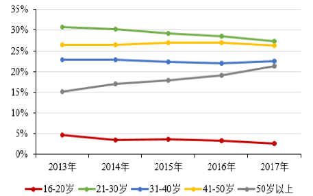 農(nóng)民工是我國(guó)城鎮(zhèn)化進(jìn)程中的勞動(dòng)力主力軍,然而近年來,農(nóng)民工群體也呈現(xiàn)出逐步老齡化的特征,農(nóng)民工平均年齡不斷提高,50歲以上農(nóng)民工所占比重提高較快。2017年農(nóng)民工平均年齡為39.7歲,比16年提高0.7歲。從年齡結(jié)構(gòu)看,30歲以下的年青一代農(nóng)民工所占比重為29.9%,比16年下降2.0個(gè)百分點(diǎn);40歲及以下農(nóng)民工所占比重為52.4%,比16年下降1.5個(gè)百分點(diǎn);50歲以上農(nóng)民工所占比重為21.3%,比16年提高2.2個(gè)百分點(diǎn),自2014年以來比重提高呈加快態(tài)勢(shì)。農(nóng)民工老齡化逐年加劇,直接影響了社會(huì)勞動(dòng)力的供給,機(jī)器替代人工成為解決這一問題最為有效的方式,也是我國(guó)制造業(yè)轉(zhuǎn)型升級(jí)的必經(jīng)之路。